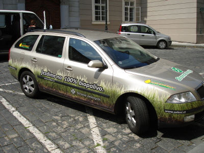 Při své pracovní návštěvě parlamentu jsem zaznamenal jedno služební vozidlo strany Zelených jezdící na ekologický pohon. Přitom mne napadlo, jaký že asi toto vozidlo zanechává po sobě odpad. Není možné aby bylo jinak, než na dalším obrázku. Tento předpoklad je asi pravdivý, protože nedaleko bylo lze zaznamenati třídění odpadu a to přesně pro tento případ.