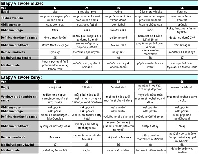 Vývoj preferencí podle věku u mužů a u žen. Dost pravdivé.