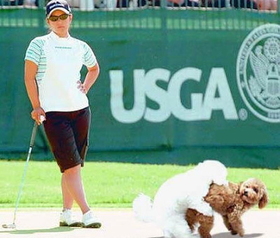Závada na hřišti. Na co asi myslí golfistka?