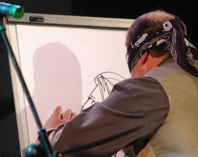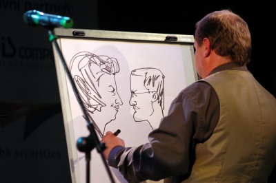 Tento výtvarník, který maluje současně oběma rukama, přičemž každou kreslí někoho jiného, také trhá rekordy v rychlomalování karikatur - jeho rekord je za tři hodiny 382 karikatury.
