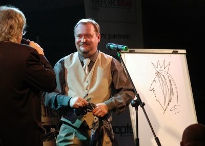 Luboš Vaněk. Známý brněnský karikaturista. Mimochodem je také autorem mých kreslených vtipů. Libreto je většinou mé, ale on je nejen kreslíř, ale také skvělý spolupracovník po stránce námětové. Je držitelem celé řady rekordů.