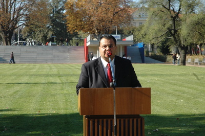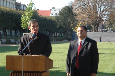 Starosta Kopečný při projevu. Vzápětí nestříhal. Vykopával. To byla teda rána....