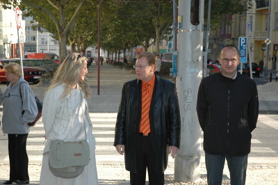 Místostarosta Pelán ve volebních barvách Richarda Svobody(nebo Onderky?) v rozhovoru se sedmou velmocí. zde v podání Ivany Svobodové z MF Dnes. To je ta vlevo. Vpravo Michal Kočař z Galantu.